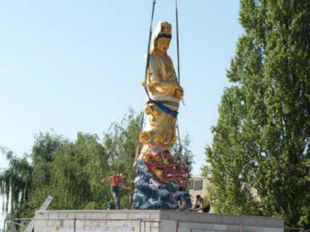 Európa legnagyobb, több mint hét méter magas Buddha-szobrát avatták fel a hét végén Hannoverben, a Németország legnagyobb buddhista kolostora előtti téren.