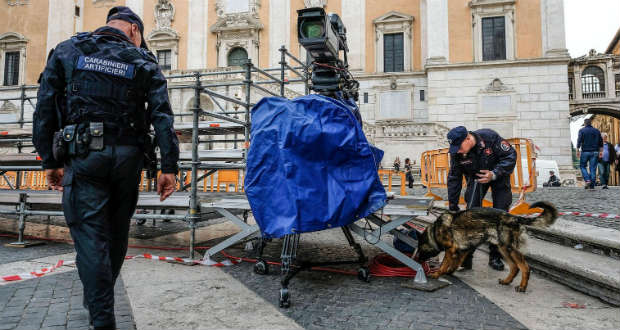 Üres szellemvárosra emlékeztet az olasz főváros központja, amelyet szombaton teljesen lezártak még a gyalogosforgalom előtt is a Római Szerződés aláírásának 60. évfordulója alkalmából tartandó EU-csúcstalálkozó miatt.