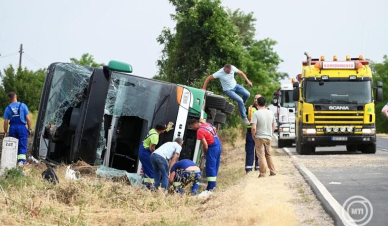 A gyerekeket szállító autóbusz vasárnap hajnalban borult fel.