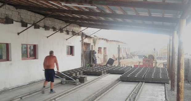 – Reggel megtisztítjuk a gépet az előző napi betontól, beolajozzuk az alkatrészeket. Emellett kihordjuk az ólból az előző nap gyártott blokkokat az udvarra. Itt tovább száradnak. Egy hét kötés után kerülnek fel a raklapokra. Ezek mozgatása a targoncával főként az én feladatom. Nagyon oda kell figyelni, hogy jól tegyük fel a pótkocsira a raklapot, nehogy szállítás közben összetörjenek a zsalukövek. Közben megkezdődik az alapanyagok, a cement és a daráltkő összeadása, tömörítése, majd a zsalukő megöntése. A formákat is magam hegesztettem.