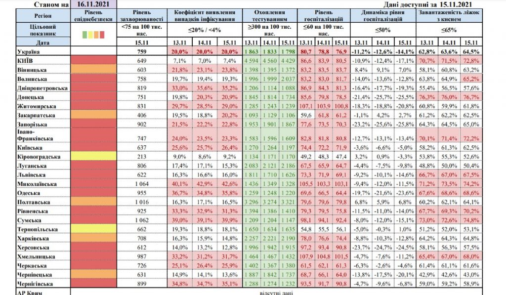 November 18-tól Vinnicja megye is vörös zónába lép. A döntést a technogén és ökológiai biztonsággal, valamint a rendkívüli helyzetekkel foglalkozó állami bizottság hozta meg.