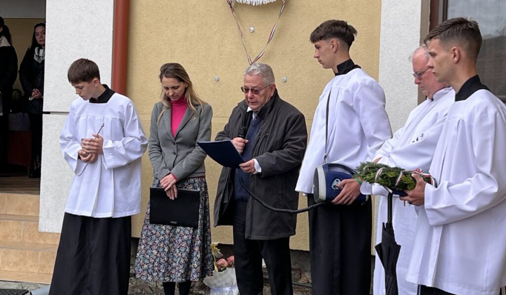 Ezt követően Molnár János atya leleplezte és megáldotta az emléktáblát, amelynél a jelenlévők elhelyezhették koszorúikat és virágaikat.