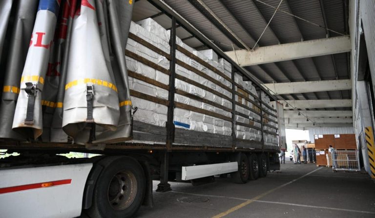 A rakomány gyógyszereket és orvosi felszereléseket tartalmaz.