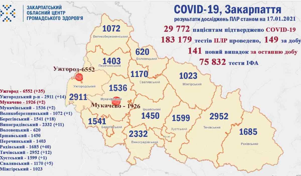 Járási szinten a legtöbb fertőzöttet, 40-et, a Rahói járásban jegyeztek fel. A Beregszászi járásban 18-cal, az Ungvári járásban 14-gyel, a Técsői járásban 12-vel, a Nagyszőlősiben 11-gyel, a Szolyvai járásban 5-tel, a Munkácsi járásban 2-vel, a Nagybereznai és a Huszti járásban 1-1-gyel nőtt a betegek száma.