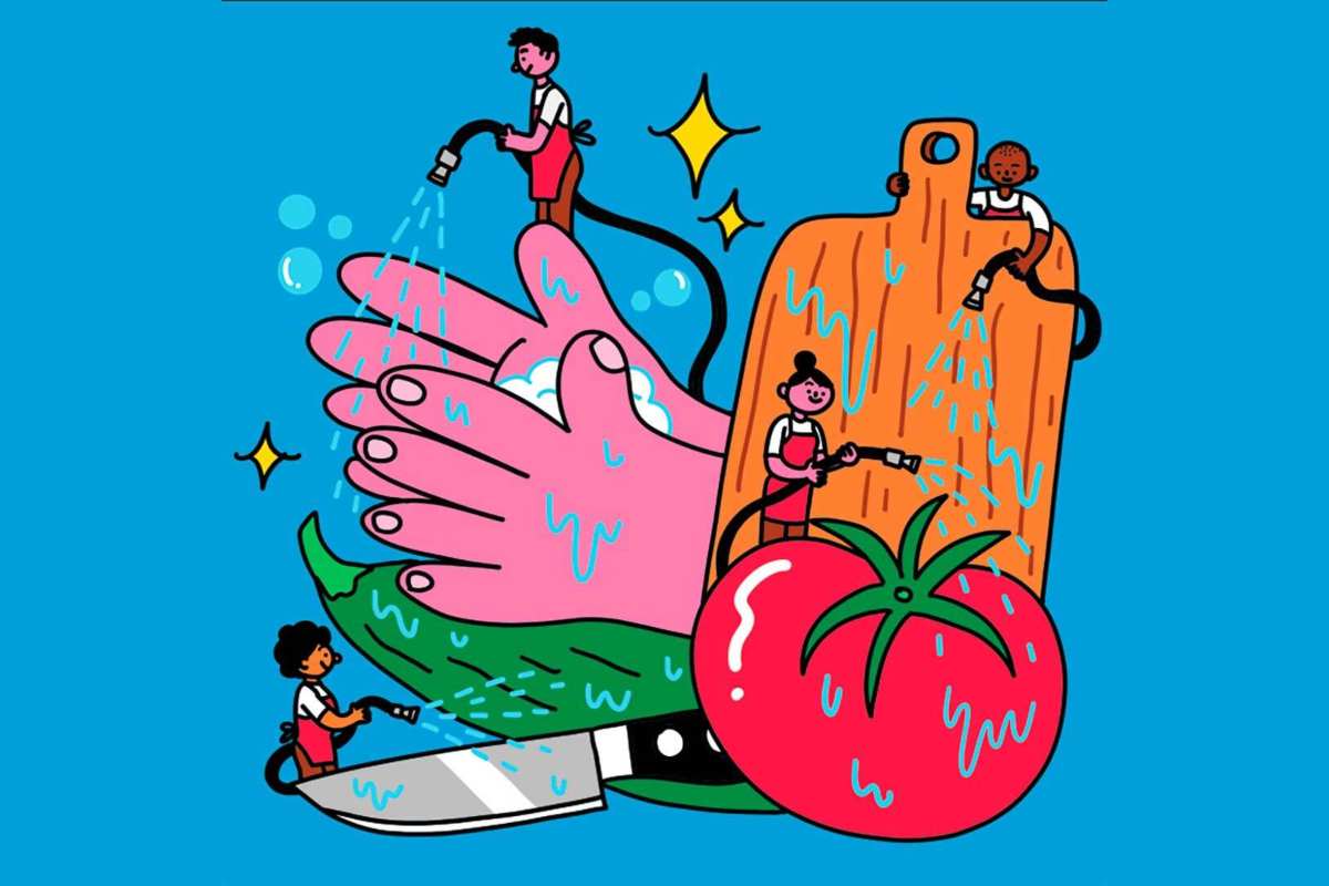 „Az egyszerű konyhai szokások segítenek elkerülni a szuperbaktériumokat. Az én illusztrációmon minden szerepel, amit főzés előtt meg kell mosni: a kezeket, edényeket, felületeket és a zöldségeket. A miniatűr mosogatók csapata minden részletre odafigyelt, hogy egészségesek maradjunk” – mondja Cécile Dormeau, az illusztráció szerzője.