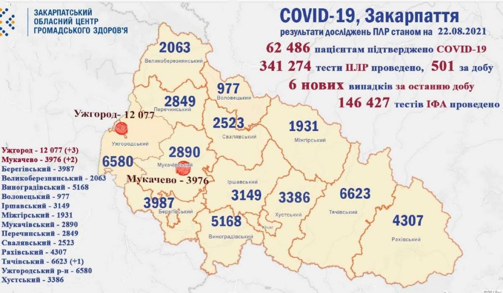 Ungváron 3, Munkácson 3 fertőzöttet regisztráltak, a Técsői járásban pedig 1-et.