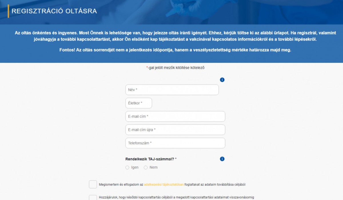 Regisztrálni a Vakcinainfo.gov.hu oldalon lehet, és immár azoknak is adott a lehetőség, akik nem rendelkeznek magyar TAJ-számmal.