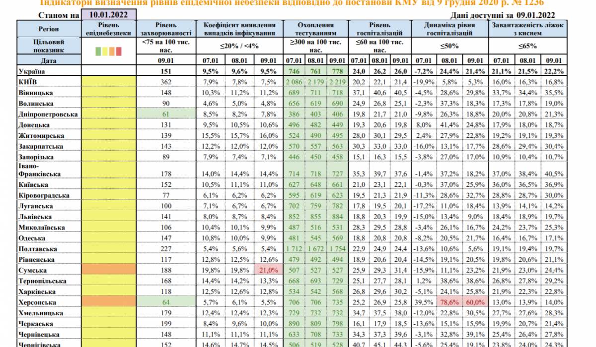 Frissítette Ukrajna Egészségügyi Minisztériuma az ország karanténbesorolását január 10-én. Herszon és Szumi megye narancssárga zónába került, Kárpátalja változatlanul sárga besorolású.