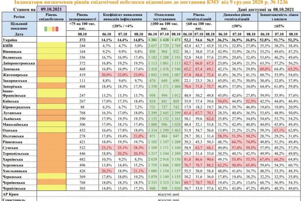 Ukrajna Egészségügyi Minisztériuma október 8-án frissítette a megyék besorolását. Kárpátalja továbbra is sárga zónában szerepel.