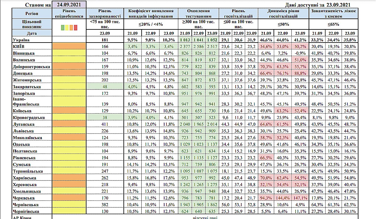 Ukrajna Egészségügyi Minisztériuma frissítette a megyék besorolását szeptember 24-én. Kárpátalja továbbra is sárga övezetben szerepel.