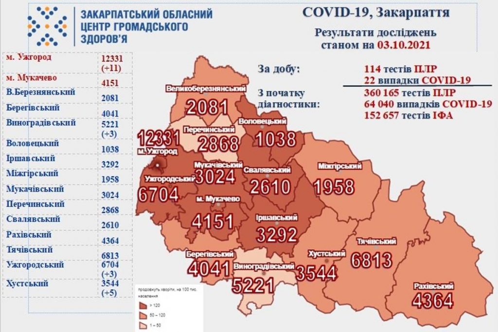A megyeszékhelyen 11 új esetet regisztráltak. A Huszti járásban 5, az Ungvári és Szőlősi járásban 3-3 fertőzöttet jegyeztek fel.