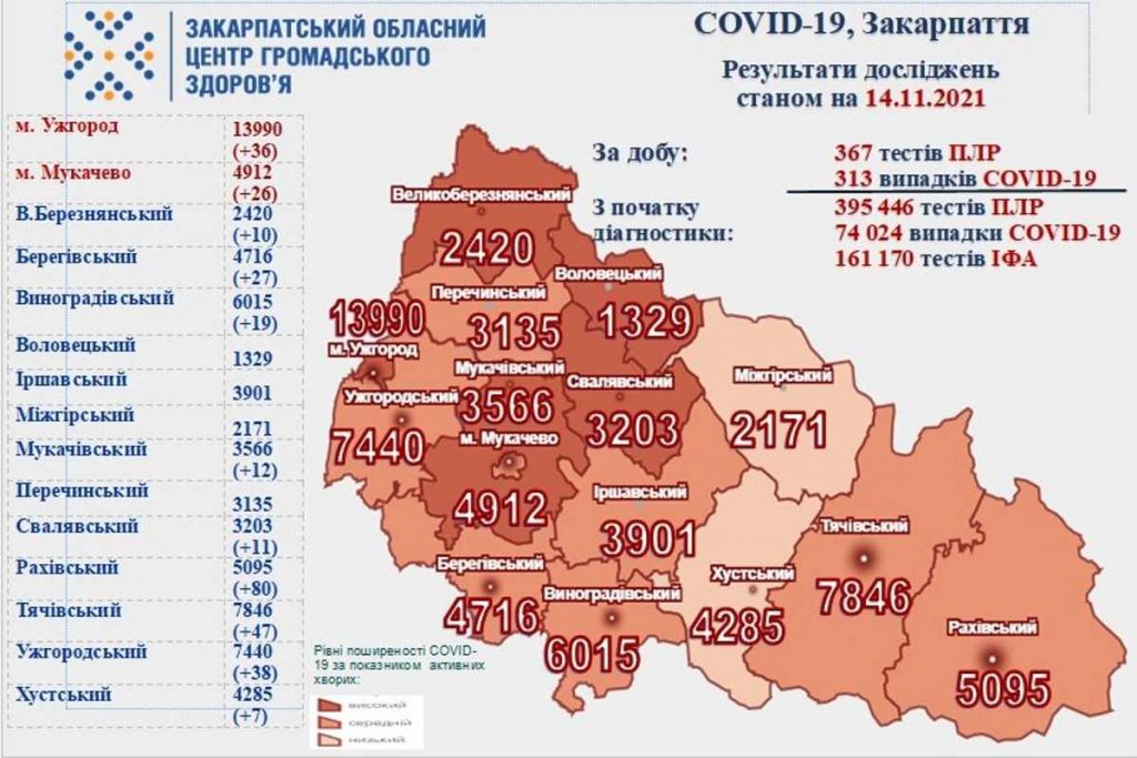 Kárpátalján eddig 74 024-en kapták el a fertőzést, ebből 64 069-en épültek fel, és 1 879-en hunytak el.