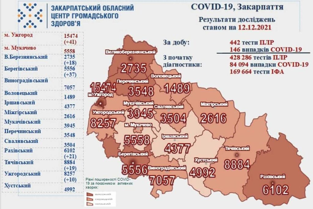 146-tal emelkedett a koronavírussal fertőzöttek száma az elmúlt 24 órában megyénkben – közölte a Kárpátaljai Megyei Közegészségügyi Központ. A felépültek száma 178-cal nőtt. A járvány öt emberéletet követelt. A megyében december 11-én 442 mintavétel történt.