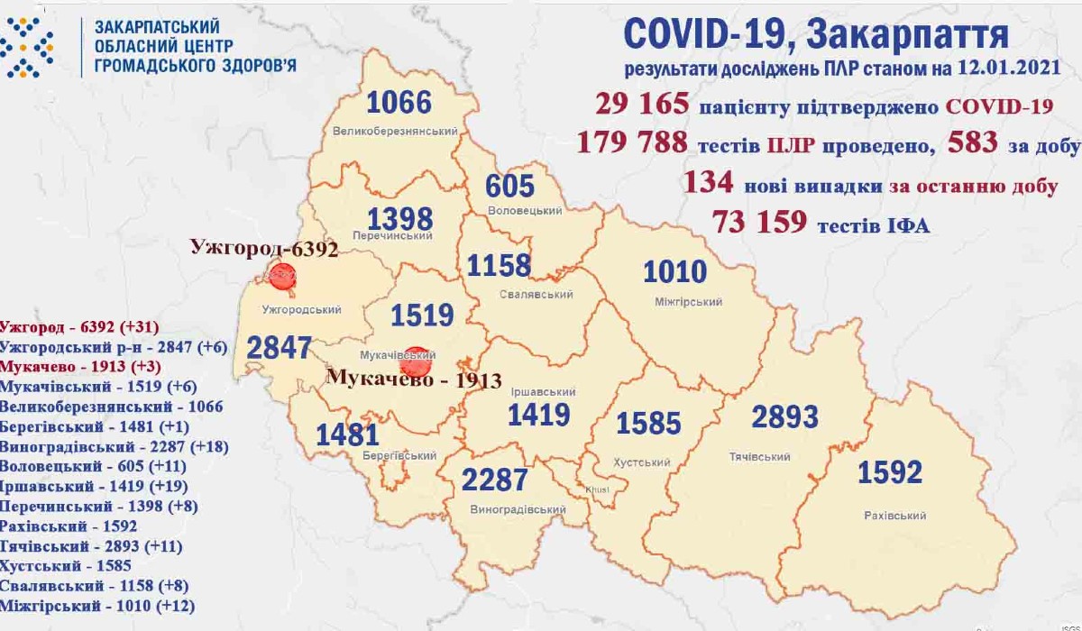 Az elmúlt 24 órában a megyében 134 koronavírusost diagnosztizáltak, köztük 7 egészségügyi dolgozót – derül ki a Kárpátaljai Közegészségügyi Központ adataiból.