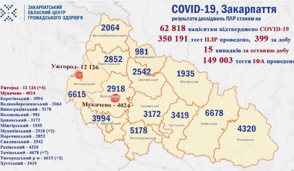Kárpátalján eddig 62 818-an kapták el a fertőzést, ebből 60 733-an épültek fel, és 1615-en hunytak el.