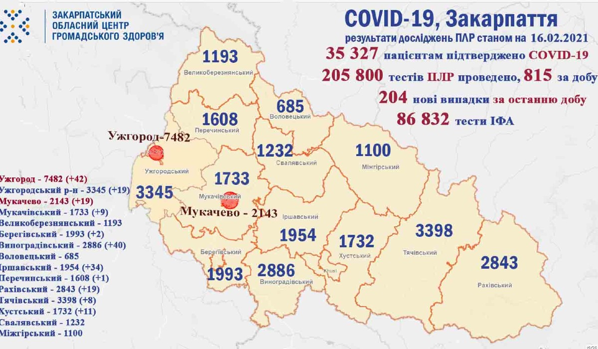 A pandémia kezdetétől összesen 35 327 esetben diagnosztizálták a betegséget Kárpátalján. A halálos áldozatok száma 803.