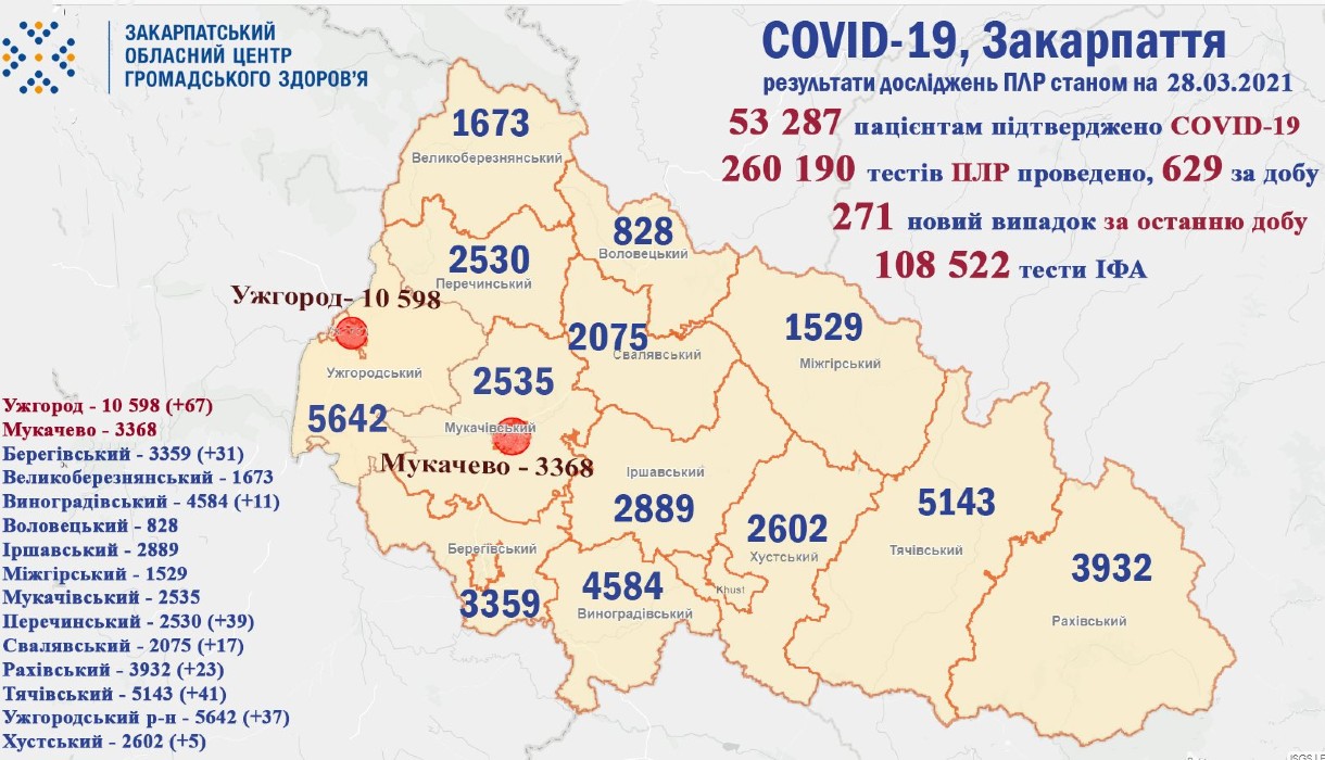 A pandémia kezdetétől összesen 53 287 esetben diagnosztizálták a betegséget Kárpátalján. A halálos áldozatok száma 1 270.