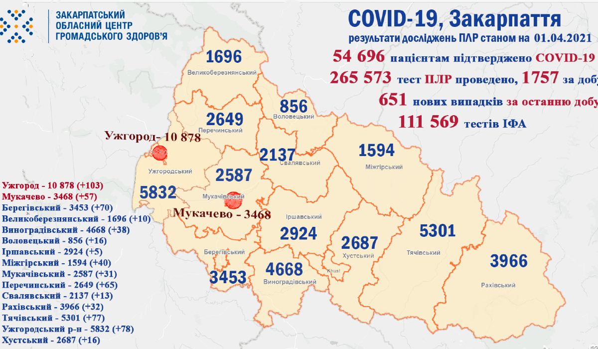 A Kárpátaljai Megyei Közegészségügyi Központ adatai szerint az elmúlt 24 órában 651 új koronavírusos esetet regisztráltak a megyében.