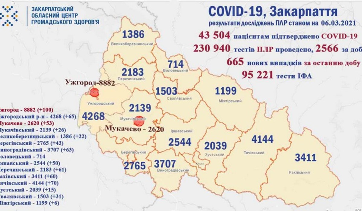 A pandémia kezdetétől összesen 43 504 esetben diagnosztizálták a betegséget Kárpátalján. A halálos áldozatok száma 982.