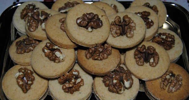 - Mindegyik karika tetejére egy szem diót nyomunk és előmelegített sütőben megsütjük.