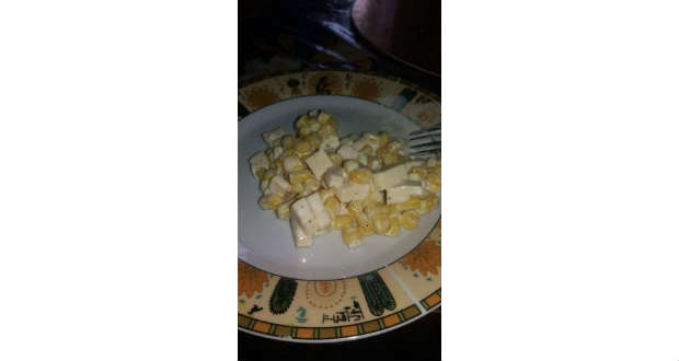 - Belekeverjük a kukoricát, és ráreszeljük a sajtot.