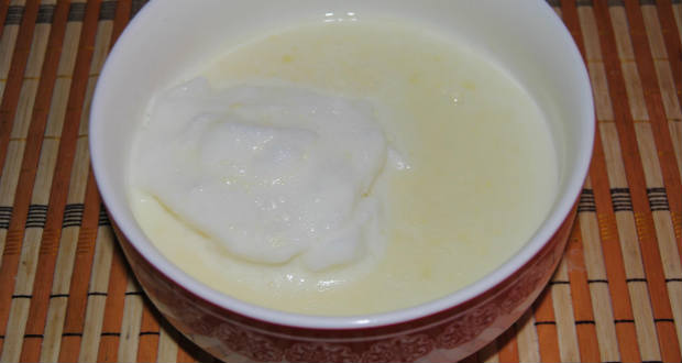 - A még forrásban lévő tejhez hozzáadjuk a habosra kevert tojássárgát, és lassú kavargatás mellett besűrítjük, felforraljuk.