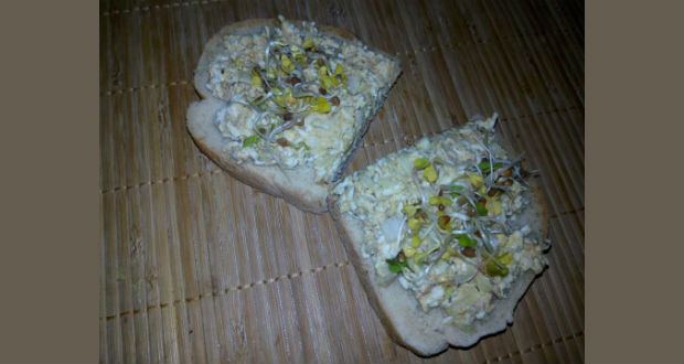 - Amint előkészítettük az összetevőket, ízlés szerint sózzuk, borsozzuk a tojásos, hagymás, krémsajtos, padlizsánpépes masszát, és alaposan összekeverjük. Előkészítjük a tetszés szerinti csírákat (akár egyedül is termeszthetjük), kenyérre vagy pirítósra halmozzuk a krémet, és ízlés szerint rászórjuk a csírát (belekeverni azért nem ajánlatos, mert nem biztos, hogy mindenki szereti). Jó étvágyat!