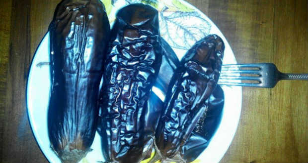 - Miután kihűltek a padlizsánok, lenyúzzuk róluk a héjat.