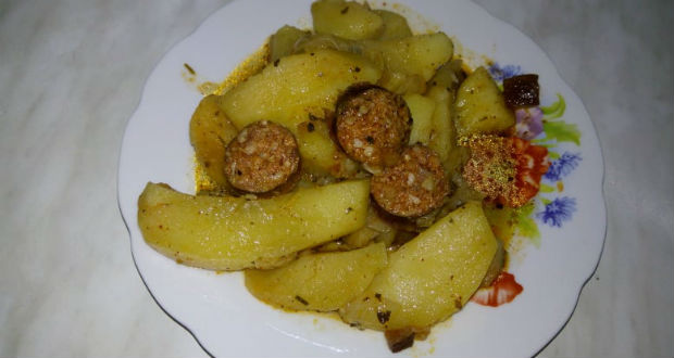 - A szalonnát felkockázzuk, kiolvasztjuk. A hagymát megtisztítjuk és felkockázzuk, egy lábasban üvegesre pirítjuk. Hozzáadjuk a felkarikázott kolbászt, megpirítjuk. Hozzáadjuk a pirospaprikát, majd a megtisztított felvágott krumplit és felöntjük annyi vízzel, ami majdnem ellepi. Megsózzuk, hozzáadjuk a felaprított fokhagymát és addig főzzük, míg a krumpli megpuhul. Főzés közben néhányszor átkeverjük.