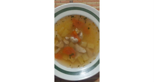 - Ha puhára főtt minden, hozzáadom az apró kockára vágott burgonyát, s még egy kis ideig főzöm. Meghintem borssal. Tálalhatjuk is. Jó étvágyat!