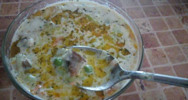 - A tököt meghámozzuk, magházát eltávolítjuk, és lereszelve mehet a lábasba. Hozzáadjuk a borsót, illetve a felaprított zöldfűszereket. Néhány percig főzzük, majd elkészítjük a tejfölös, lisztes, tejes habarást.