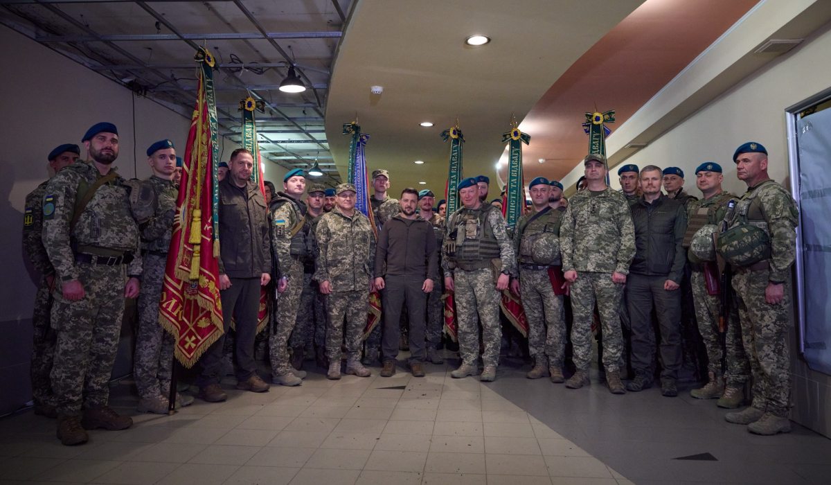Az ukrán elnök a fronton harcoló katonákat látogatta meg, hogy gratuláljon és kitüntetéseket adományozzon nekik a jeles nap apropóján.