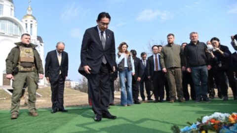 A japán kormányfő kedd reggel érkezett Kijevbe.