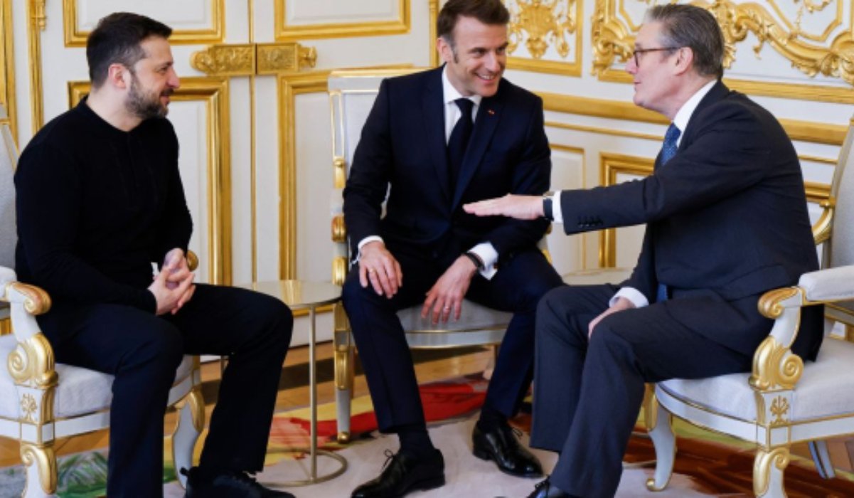 Nyitókép: Volodimir Zelenszkij ukrán, Emmanuel Macron francia elnök és Keir Starmer brit kormányfő megbeszélést folytat az Élysée-palotában 2025. március 27-én. Forrás: MTI/EPA/AFP pool/Ludovic Marin