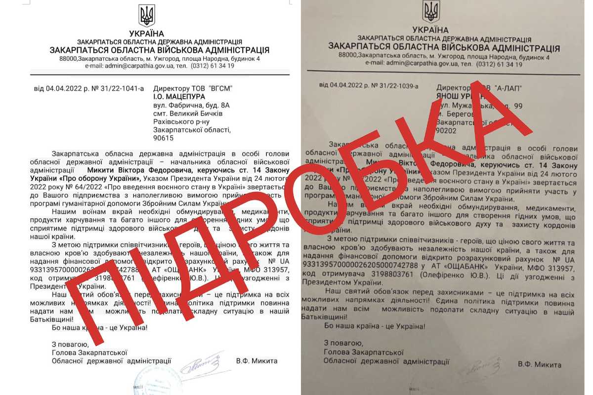 Idáig azonosítatlan személyek küldenek meghamisított leveleket, amelyekben hamis bankszámlákra történő jótékonysági pénzügyi támogatást kérnek a címzett személyektől – közölte Viktor Mikita, a Kárpátaljai Megyei Katonai Közigazgatás (OVA) vezetője.