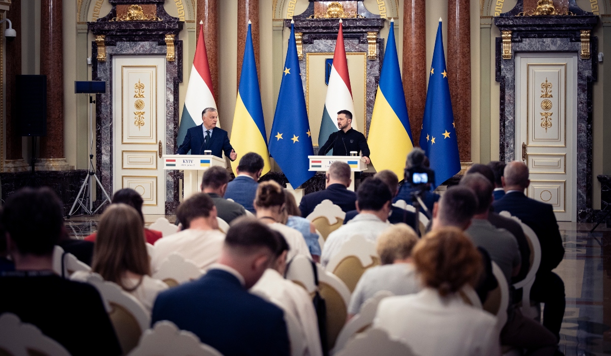 Orbán Viktor, az Európai Unió Tanácsának soros elnökségét betöltő Magyarország kormányfője kedd reggel érkezett Kijevbe, ahol Volodimir Zelenszkijjel folytatott tárgyalását követő közös sajtótájékoztatón megköszönte az ukrán elnöknek a meghívást, jelezve, hogy múlt csütörtökön állapodtak meg a találkozóról Brüsszelben.