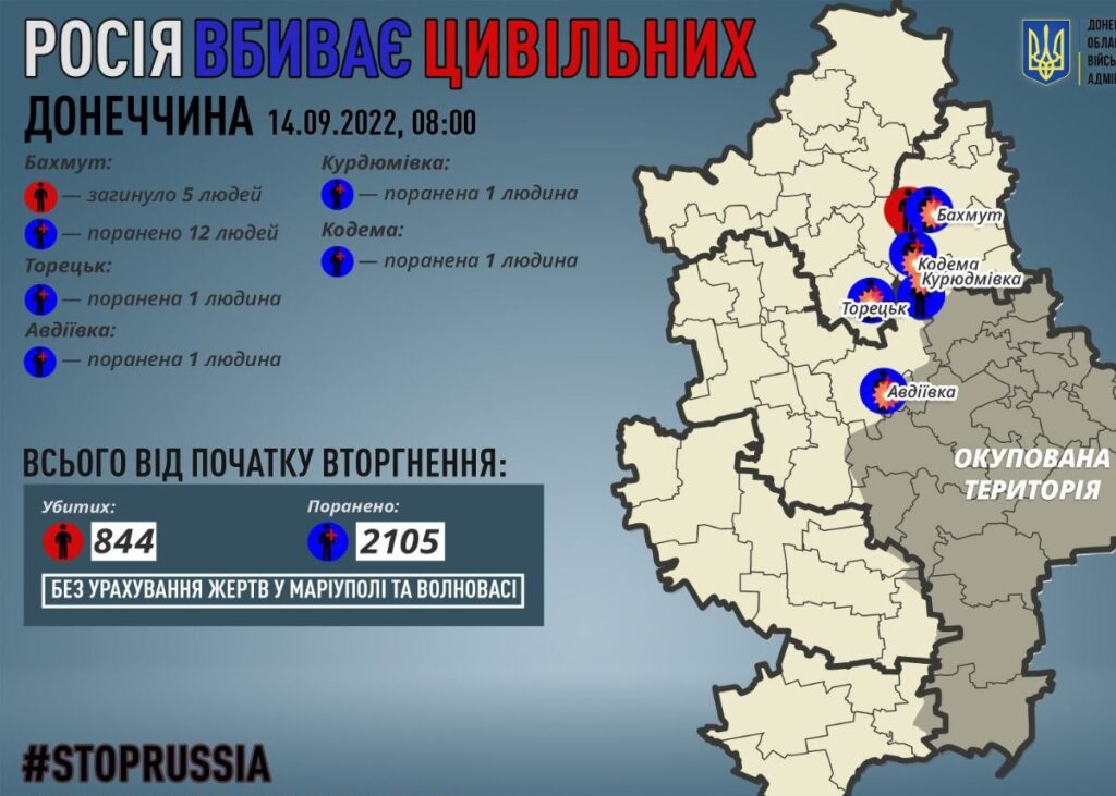 Pavlo Kirilenko, az OVA vezetője szerint a háború kezdete óta 844-en vesztették életüket a támadások miatt, további 2 105-en pedig megsebesültek.