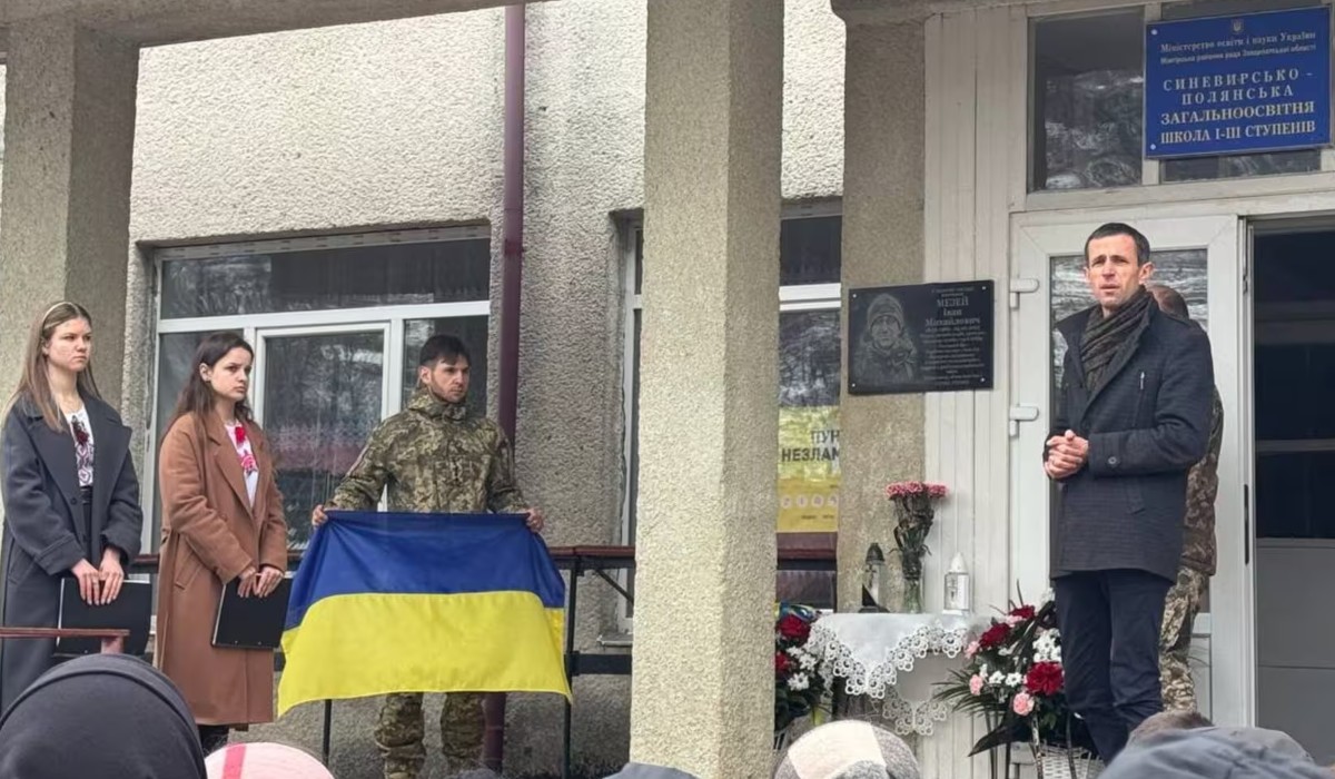 Emléktáblával adóztak Mezej Ivan elesett katona tiszteletére a védő szülőfalujában, a huszti járási Felsőszinevéren (Szinevirszka Poljana).