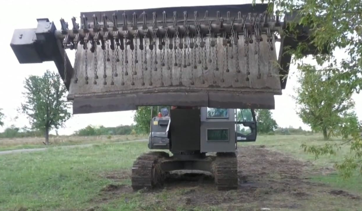Újabb, a háború kihívásaihoz alkalmazkodó eszközt mutattak be az ukrán front közelében. A láncos buzogányfejjel felszerelt kotrógép Volodimir Zelenszkij ukrán elnök szülővárosa, Krivij Rih térségében aknamentesíti a földeket. A gépet láncok és a végükre erősített súlyok teszik alkalmassá a feladatra. Forgás közben egy egytonnás kalapács erejével csapnak le. Nincs olyan aknatípus, ami ettől ne robbanna fel – mondta az eszköz tervezője.