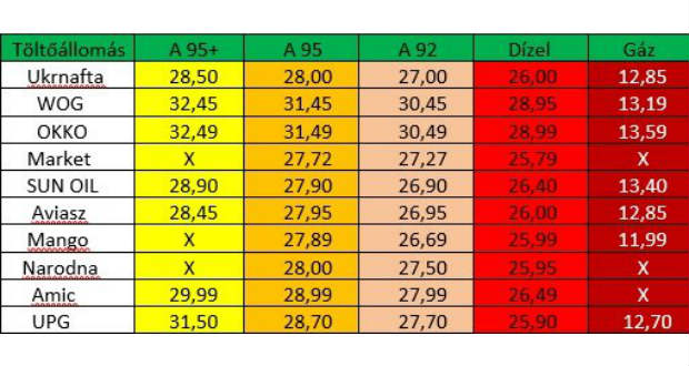 Jelenleg az OKKO benzinkutakon egy liter gáz 13,59, míg a WOG-on 13,19 kopejka.