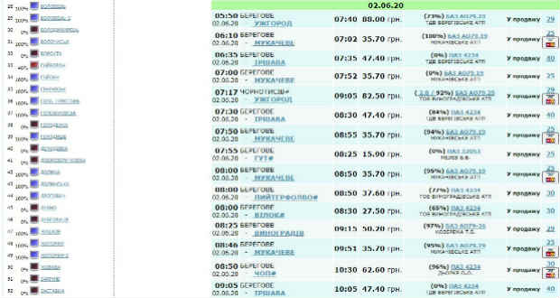 Ungvárról Munkácsra 44 hrivnyába, Husztra 65 hrivnyába, míg Rahóra 202 hrivnyába kerül egy jegy.