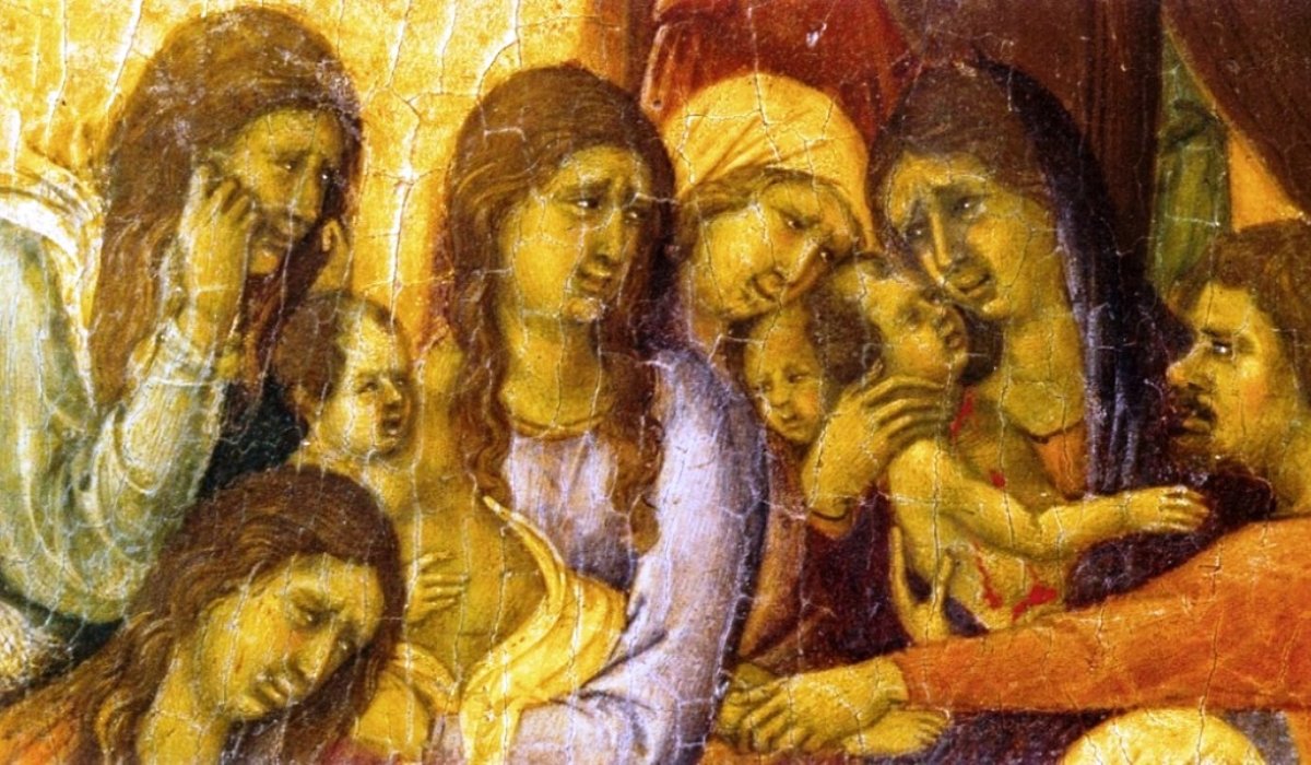 Beteljesedett, amit Jeremiás próféta jövendölt: „Kiáltás hangzik Rámában, nagy sírás és jajgatás: Ráchel siratja fiait, és nem akar vigasztalódni, mert nincsenek többé.”