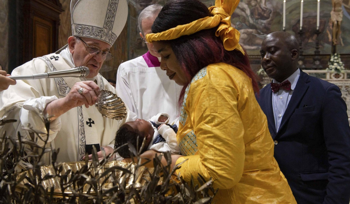 (Nyitókép: A vatikáni média által közreadott képen Ferenc pápa megkeresztel egy csecsemőt a Vatikán sixtusi kápolnájában 2019. január 13-án. (Fotó: MTI/EPA/Vatikáni média)