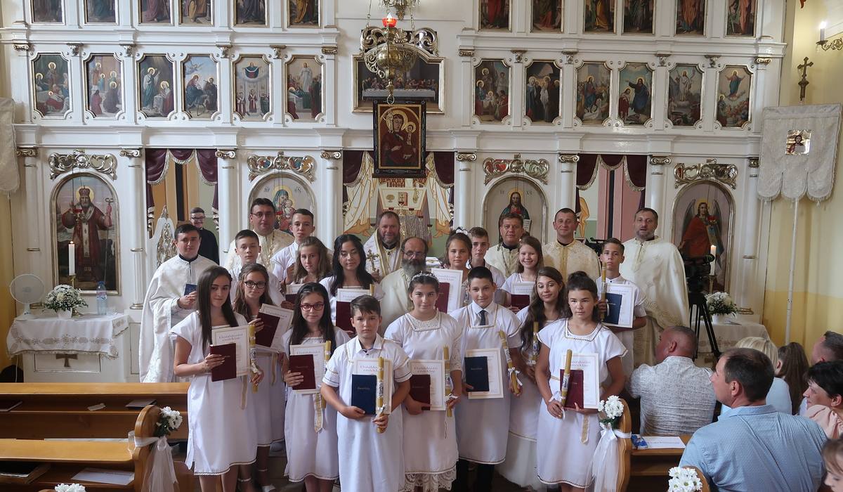 Nílus püspök szentbeszédében felhívta a figyelmet arra, hogy a templom új, festett ikonjai mellett ott vannak az élő ikonok, a gyermekek, akik első szentáldozásukkor Krisztus testét és vérét veszik magukhoz. Így szívük a feltámadt Krisztus templomává válik.