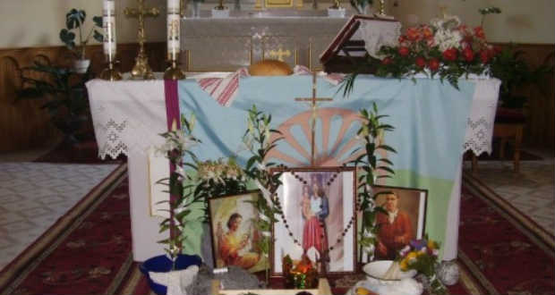 Az oltár előtt három képet állítottak fel: a Cigány Szűzanya szobrának képét (ez a Vatikánban, a Vándorlók és Útonlévők Pápai Tanácsának kápolnájában található), El Pelének, az első boldoggá avatott cigánynak képét, valamint a Boldog Emilia Fernandez Rodrigezt ábrázoló képet. A cigány fiatalasszony szintén a spanyol polgárháború alatt halt vértanúhalált; idén március 25-én avatták boldoggá, életével már korábban megismerkedhettek a kárpátaljai cigányok.