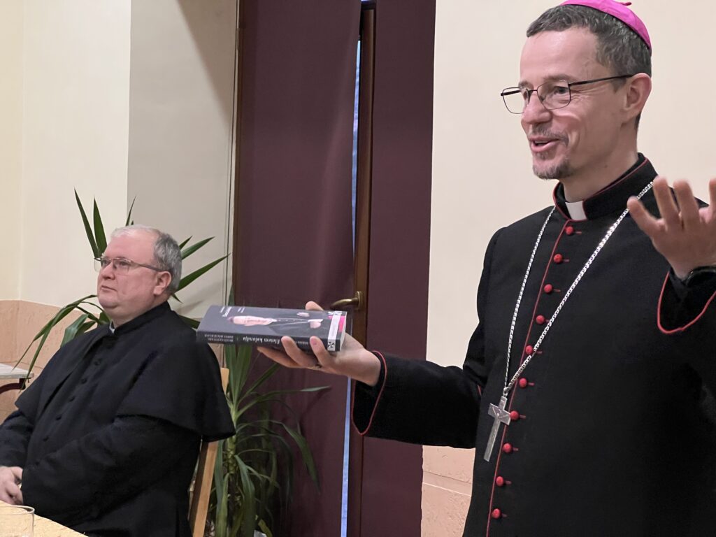 Egyházmegyénk főpásztora, Lucsok Péter Miklós interjúban elmondott szavait Pawel Kozacki OP szerkesztette és írta meg könyv formájában, először lengyel nyelven, melynek címe: Életem kalandja. Az írás később ukránul, nemrégiben pedig Hidász Ferenc OFM jóvoltából magyar nyelven is megjelent. A nagyterem megtelt érdeklődőkkel, idősekkel, fiatalokkal, akik szívesen jöttek el, hogy megismerjék Lucsok Miklós püspök életének kalandját.