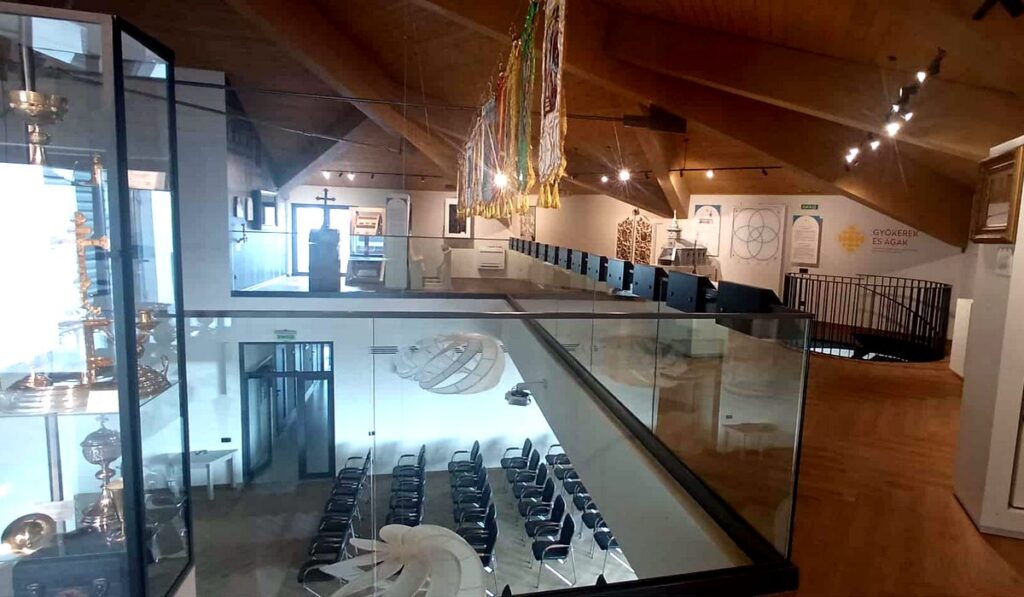 A következőkben a Gyökerek és ágak kiállítás kurátora, Marosi István ismertette a tárlatot. „Több évszázadot és annak írott, festett, faragott és épített örökségét egy ilyen kis helyen összefoglalni és bemutatni másként nem lehet, csak esszenciálisan. Mindenből egy keveset mutathatunk be: egy-egy tárgyat, egy-egy könyvet, egy mozzanatot, egy templomot és tartozékait, a papság lényegét és az általuk használt liturgikus ruhákat… Azt szeretnénk kifejezni, hogy a rész magában hordozza az egészet” – emelte ki a tárlattal kapcsolatban. Köszönetét fejezte ki azoknak a szervezeteknek, egyházközségeknek és személyeknek, amelyek és akik hozzájárultak a kiállítás megvalósulásához.