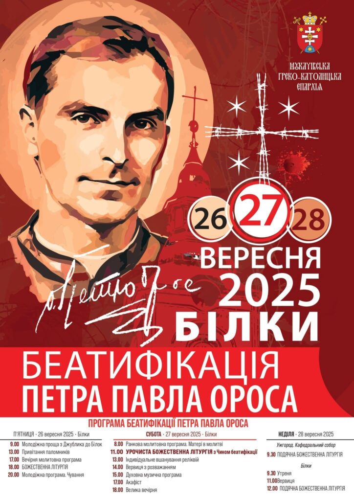 Orosz Péter Pál görögkatolikus mártírpap boldoggá avatásának szertartására 2025. szeptember 27-én kerül sor Bilkén – olvasható a Munkácsi Görögkatolikus Egyházmegye honlapján.