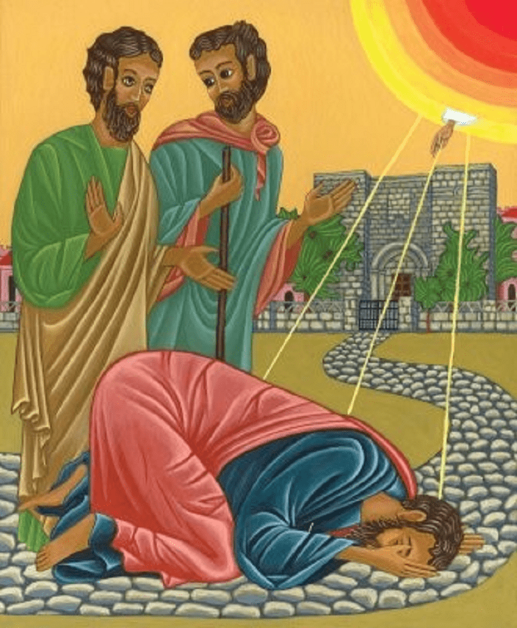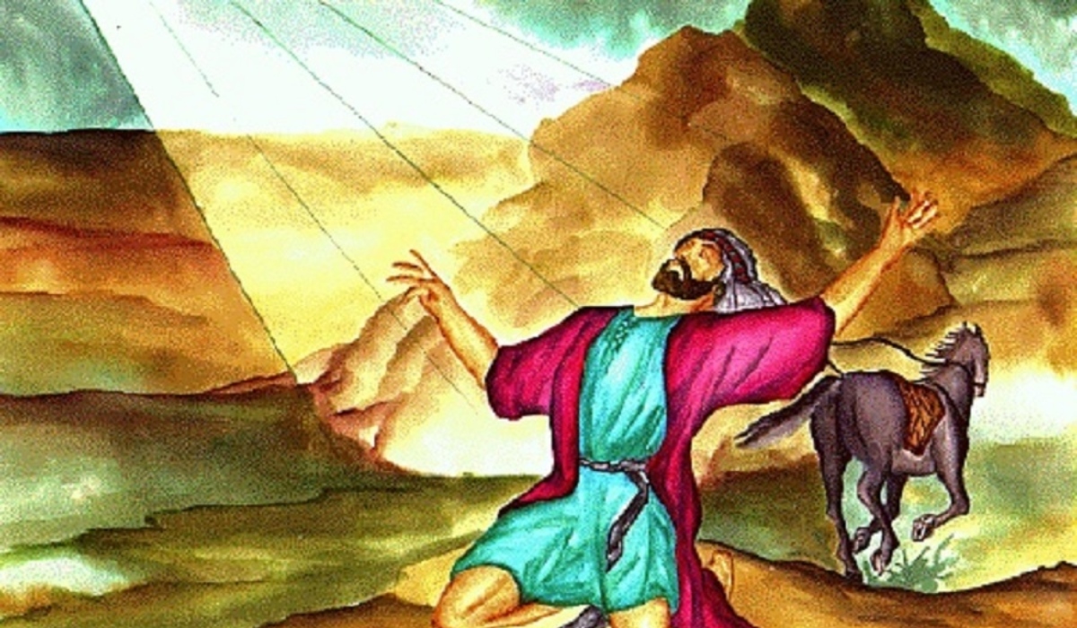 Földre borulva hallotta, hogy egy hang így szól hozzá: »Saul, Saul, miért üldözöl engem?« Erre megkérdezte: »Ki vagy, Uram?« Az folytatta: »Én vagyok Jézus, akit te üldözöl. De állj fel és menj a városba, ott majd megmondják neked, mit kell tenned.« Útitársainak elakadt a szavuk, mert hallották a hangot, de látni nem láttak semmit. Saul feltápászkodott a földről, kinyitotta a szemét, de nem látott. Úgy vezették be Damaszkuszba, kézen fogva. Három napig nem látott, nem evett, és nem ivott” – olvasható az Apostolok cselekedetei 9, 1-9 versében.