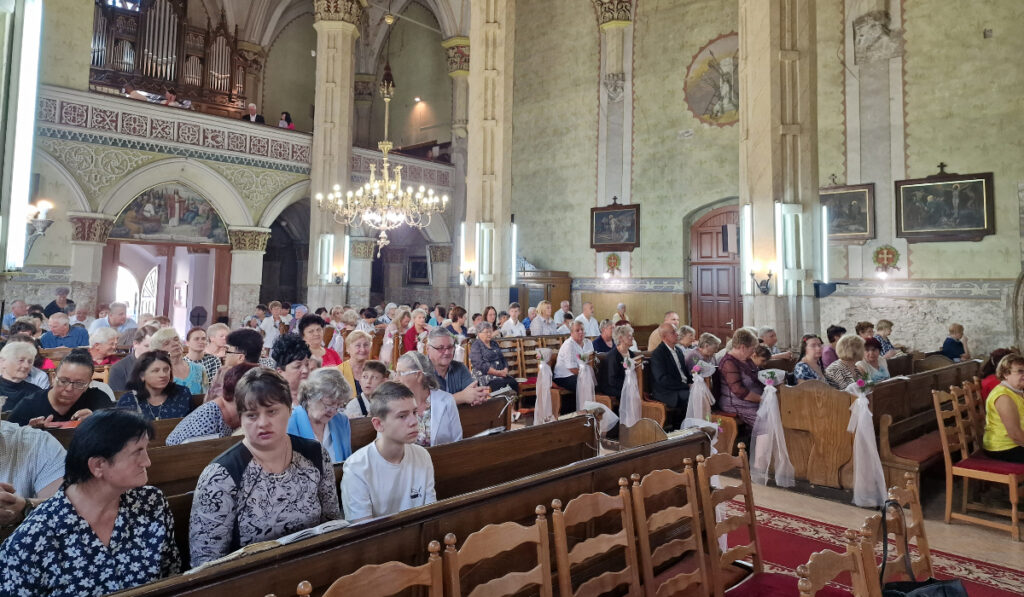 A templom megtelt a helyi közösség tagjaival, valamint Kárpátalja más pontjáról, különösen a környező falvakból érkezett hívekkel. A vendégek énekelve, a feldíszített hordozható Szent Keresztfával vonultak be a templomba, melyeket az oltárnál helyeztek el. A kereszt tiszteletére a hívek szentmise előtt keresztutat jártak, elmélkedve Krisztus szenvedésének állomásain.